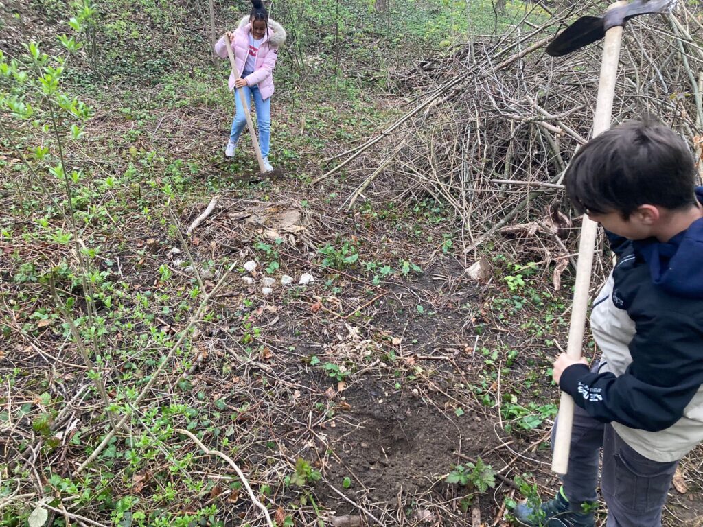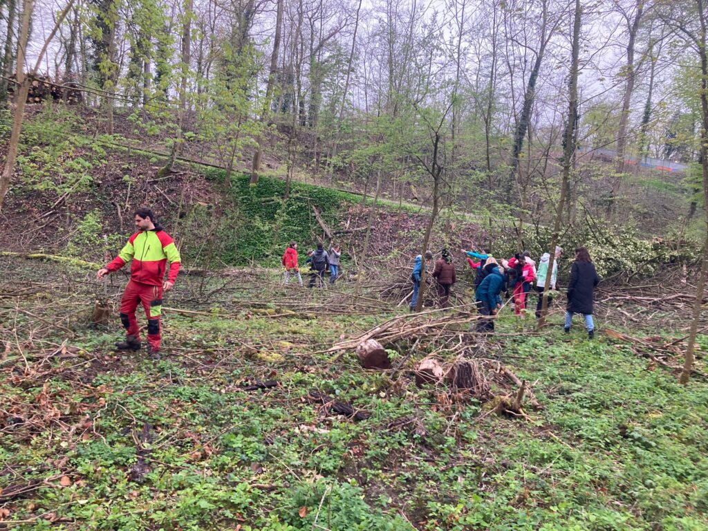 Am Dienstag, 18. April 2023 waren Schüler:innen aus dem Schulhaus Surmatten in Reinach zu Besuch im Reinacher Wald. Ihre Aufgabe war es, neben der notwendigen Schlagpflege, Eichen und Sträucher zu pflanzen. Sie wurden dabei von unseren Forstwarten unterstützt. Wer gerade nicht pflanzen konnte, bildete mit den liegenden Ästen Haufen. Diese Strukturen sind einerseits gut für die natürliche Verjüngung und schaffen andererseits neuen Lebensraum für Igel, Amphibien und viele andere Tiere.